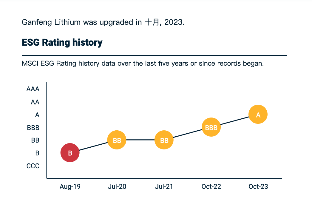▲贛鋒鋰業(yè)近五年MSCI ESG評級情況