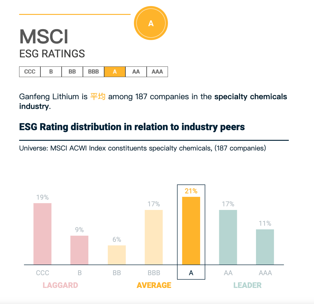 ▲贛鋒鋰業(yè)MSCI ESG評級A級,位居全球同業(yè)平均水平