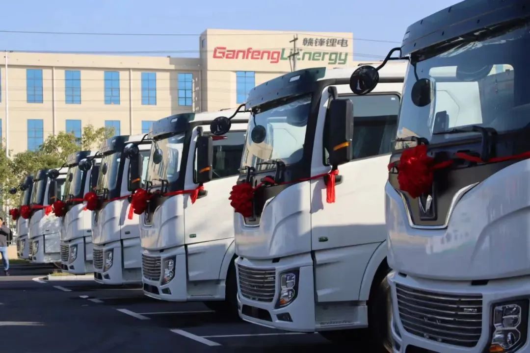▲首批搭載贛鋒鋰電方形磷酸鐵鋰電池的電動重卡牽引車